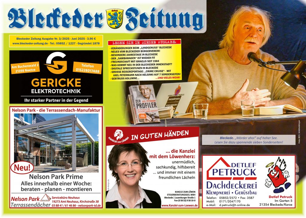 Einer der wichtigsten Vereine ist der Bürgerverin, bei dem man praktische Hilfen im Alltag erhält. Dazu gibt es diesmal vier Sonderseiten. Apropos Sonderseiten, die BZ berichtet in dieser Ausgabe auf gleich sieben Sonderseiten über die „Crime Cruise“ nach Helsinki. Mörder Ahoi mit Axel Petermann!